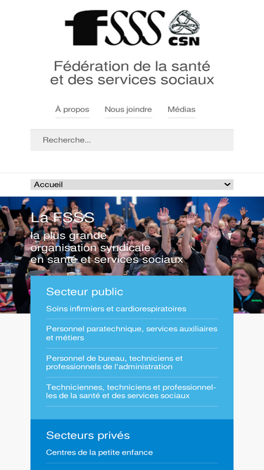 À propos de nous: Présentation de la FSSS, comité exécutif, bureau fédéral, FSSS par région, site web et coordonnées des syndicats, politique de confidentialité du site web