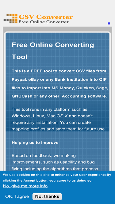 77%free online csv converter. save your bank/institution statement as qif or ofx to then import into your accounting software.