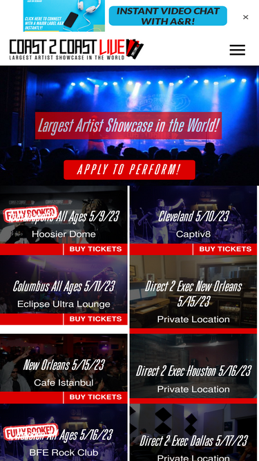 100%Coast 2 Coast LIVE is the Largest Artist Showcase in the World! Artists perform for celebrity judges in the showcase to be scored and win prizes including the $50,000 Grand Prize at the annual World Championships in Miami!