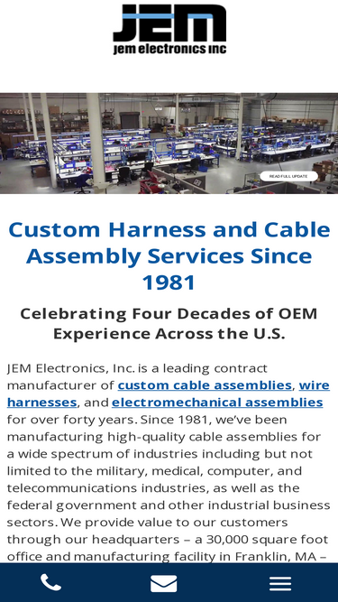 JEM Electronics Inc. has been a leading contract manufacturer of custom cable assemblies, wire harnesses, and electromechanical assemblies for over 42 years.