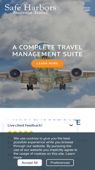 99%Safe Harbors Business Travel delivers responsive 24/7 corporate travel management services with powerful analytics, duty of care, unused ticket tracking, and seamless tech integrations.