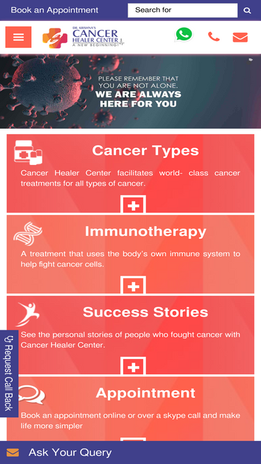 77%Dr. Krishna's Cancer Healer Center is one of the best cancer treatment centers in Delhi, India. We have a team of best cancer doctors in Delhi India. We provide the best cancer treatment to our patients using immunotherapy. Our Cancer treatment centers are located in Pitampura Delhi, Mumbai, Bangalore, Chandigarh, Ahmedabad, Indore, Hyderabad & Dubai.