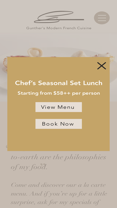 75%Experience the elegance of French fine dining at Gunther’s, a contemporary yet authentic French restaurant in Singapore Purvis Street. Indulge in exquisite cuisine by Chef Gunther Hubrechsen.