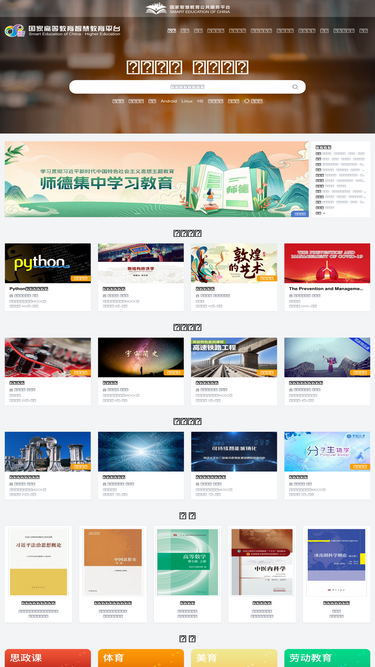 91%国家高等教育智慧教育平台是由教育部委托、高等教育出版社有限公司建设和运行维护、北京理工大学提供技术支持的全国性、综合性在线开放课程平台。本网站致力于汇聚优质高等教育在线课程等资源,并推进广泛传播与共享,面向高校师生和社会学习者提供全面、优质、便利的课程搜索及相关服务。
