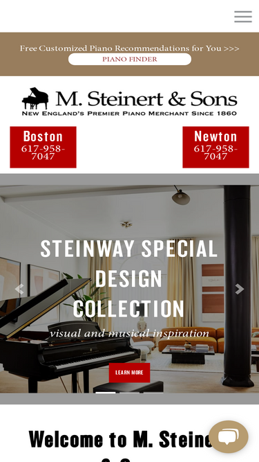 98%M. Steinert & Sons has been an authorized Steinway piano dealer, offering the Steinway-designed Boston, Essex, and other pianos for over 150 years.