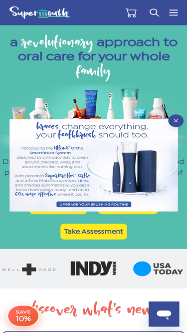 74%Orthodontic patients say hello to an Orthodontic floss of heroic proportions. SuperMouth Ortho Floss uses patented expanding technology that clears away 40% more plaque than basic flosses. Orthodontics can be tricky to keep clean, but we make flossing easy!