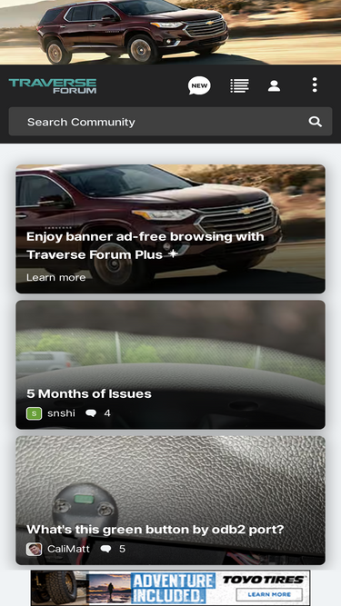 68%a forum community dedicated to chevy traverse owners and enthusiasts. come join the discussion about performance, modifications, troubleshooting...