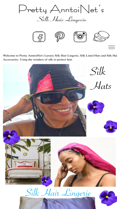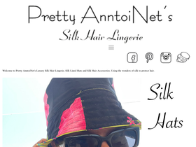 82%welcome to pretty anntoinet's, all 100% silk hair lingerie, no synthetic satins. my sleep caps and sleep accessories use the wonders of silk to keep your hairstyle together longer, protect hair from drying and breaking. and they're so beautiful, they help maintain your diva image all night long.