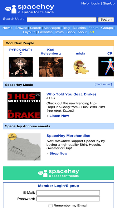 62%SpaceHey is a retro social network focused on privacy and customizability. It's a friendly place to have fun, meet friends, and be creative. Join for free!