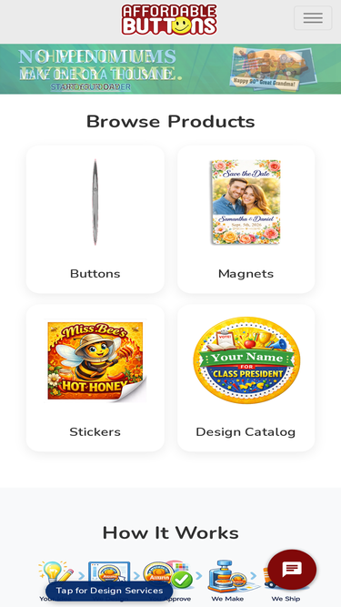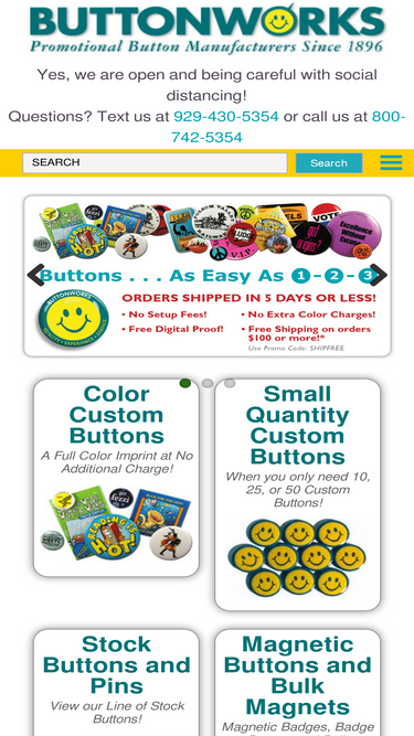 100%custom buttons w/guraranteed delivery date! pin-back custom buttons & magnetic buttons with service, quality & value in round, rectangle, square & oval usa made.