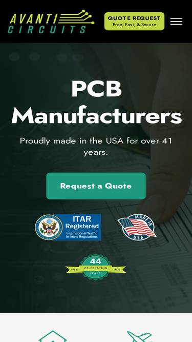Avanti Circuits is a US based PCB manufacturer company fabricating two-layer, multi-layer, quick turn, prototype, and production PCB- made in USA and American-owned. Request a free quote today!