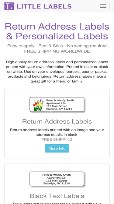 83%Color or black on white return address labels and personalized labels printed with your own information. Free international shipping. Use on envelopes, parcels, cds and belongings.