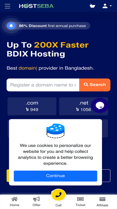 83%Get fast, secure, and affordable BDIX web hosting and domain registration in Bangladesh with Host Seba. Reliable uptime, NVMe Storage, and 24/7 support.