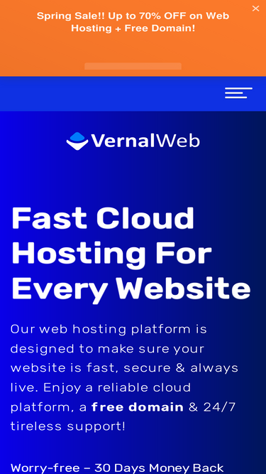 97%VernalWeb offers reliable & affordable website hosting plans with latest technology. 30 Days Money-back Guarantee, 99.9% uptime and 24X7 premium support.