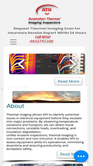 84%| ATII Thermal Imaging provides thermographic Inspections for risk management of electrical equipment, insurance requirements and advanced reliability - Thermographic reports are produced within 24 hours following inspection. Visit ATII at www.atii.com.au and Call Now 0432791100
