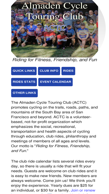 98%the almaden cycle touring club is the largest bicycle club in the south bay. we ride for fun, friends, and fitness.