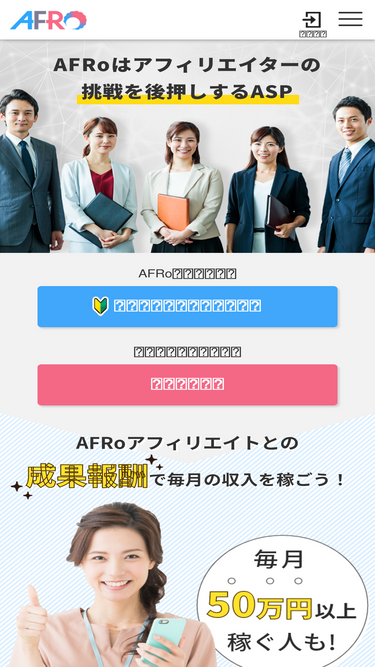 100%他社にない価値を提供するアフィリエイトの「afro(アフロ)」。挑戦し続けるアフィリエイターには、担当者から独自案件も紹介。副業からトップアフィリエイターへの転身も応援します!おすすめ案件特集も充実。成果報酬の振込手数料もafroが負担!