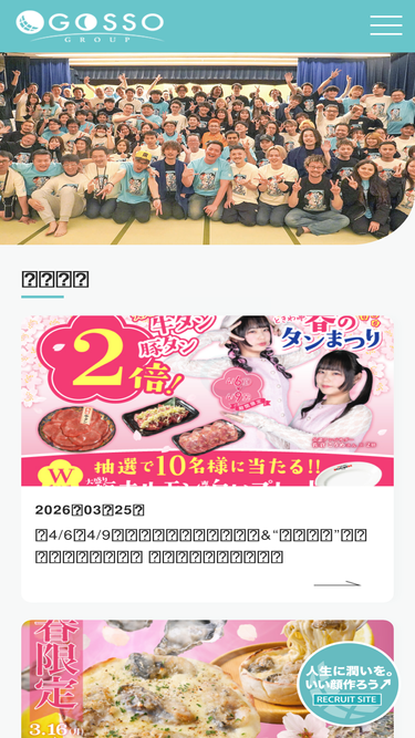 87%全国で飲食店、居酒屋を運営するハピネス&スマイル創造カンパニー GOSSO(ゴッソ)グループのお知らせページです。