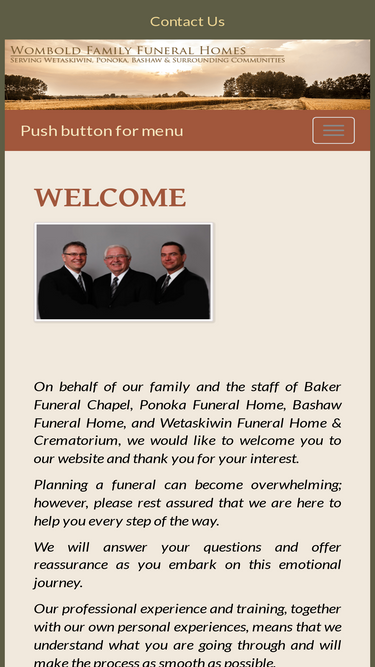 100%Bashaw Funeral Home Ltd. - Wombold Family Funeral Homes offers a variety of funeral services, from traditional funerals to competitively priced cremations, serving Ponoka, AB and the surrounding communities. We also offer funeral pre-planning and carry a wide selection of caskets, vaults, urns and burial containers.