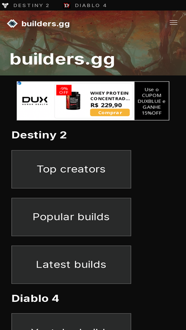71%builders.gg helps you find and understand your next Destiny 2 build. Filter on all aspects of the build and find one that fits your playstyle. Destiny 2 build discovery/analysis tool