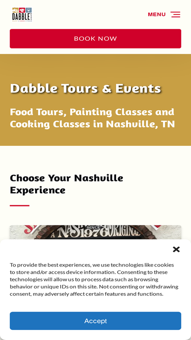 77%Dabble Tours and Events offers food tours of Nashville, painting classes, cooking classes, private events and more! We can't wait to host your group. Book now!