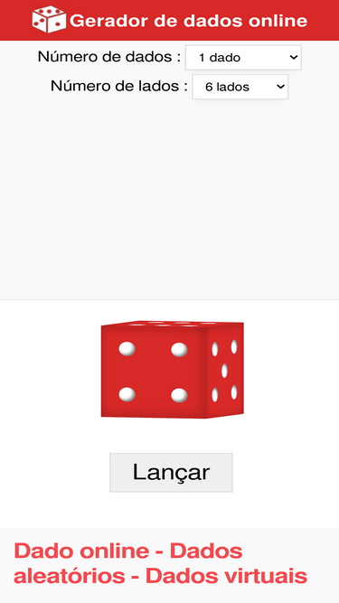 82%roll on-line, esta ferramenta permite o lançamento de roll virtual. ideal para seus jogos de tabuleiro, permite criar dados com um lado aleatório