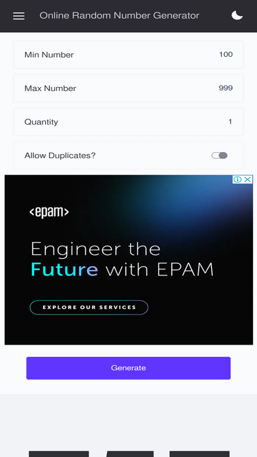 80%random number generator can generate random numbers online for free, it support customize number range, generate number of numbers and support full screen display.