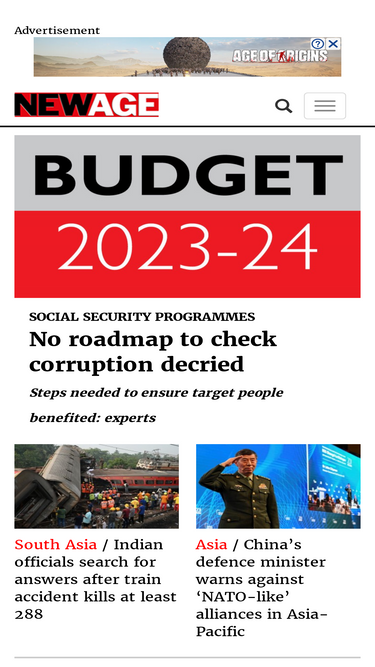 91%New Age, a Dhaka-based leading English language daily newspaper, is a major source of news of Bangladesh and international affairs