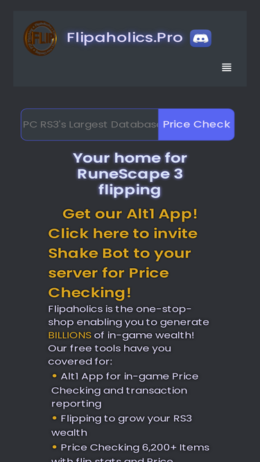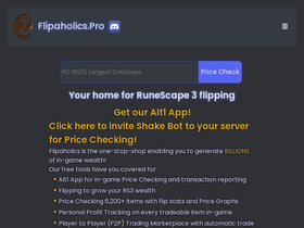92%flipaholics pro, flipaholics discord. home of shake bot, rs3's most accurate & complete item/price checking database, automatic profit tracking, and automatic p2p trade matching.