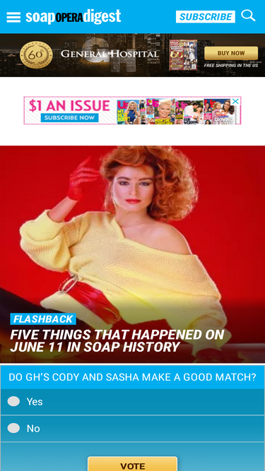 85%The latest soap opera news, previews and spoilers, daily recaps and summaries, exclusive interviews, and character profiles for The Young and The Restless, Days of Our Lives, General Hospital, The Bold and the Beautiful, and your favorite past soaps.
