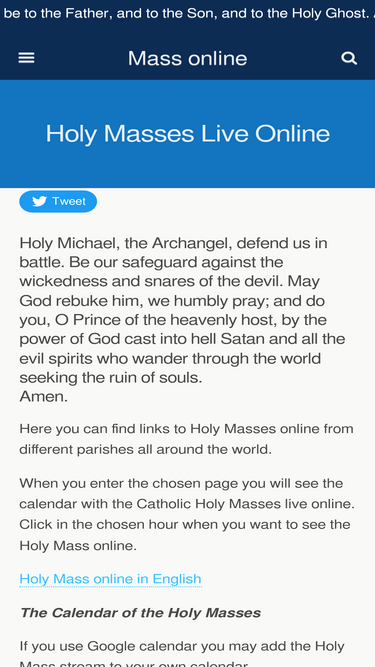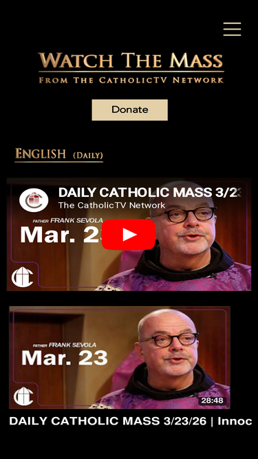 100%Watch Catholic Masses from the CatholicTV studio chapel on demand. English Mass Sunday-Friday, Spanish Mass Sunday.