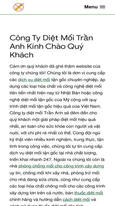 100%Công ty diệt mối tại Quảng Ninh Trần Anh nhận diệt mối tại nhà giá rẻ, dịch vụ uy tín, kỹ thuật viên chuyên nghiệp. Hóa chất nhập khẩu không độc hại, không mùi hôi. Diệt một lần là hêt sạch mối, mối không tại đi tại lại nhiều lần.