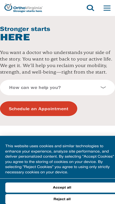 89%OrthoVirginia combines science, technology, and a creative approach to deliver Virginia’s premier orthopedic, physical therapy, and sports medicine care.