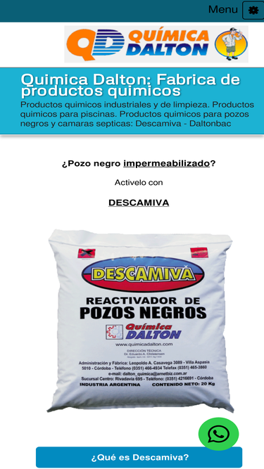 productos quimicos industriales y de limpieza. productos quimicos para piscinas. productos quimicos para pozos negros y camaras septicas: descamiva - daltonbac