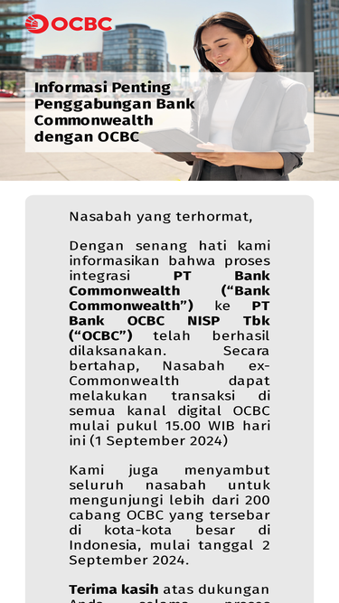 Penyedia solusi keuangan yang menyeluruh dan memberikan pengalaman perbankan yang terintegrasi, untuk setiap langkah kehidupan Anda