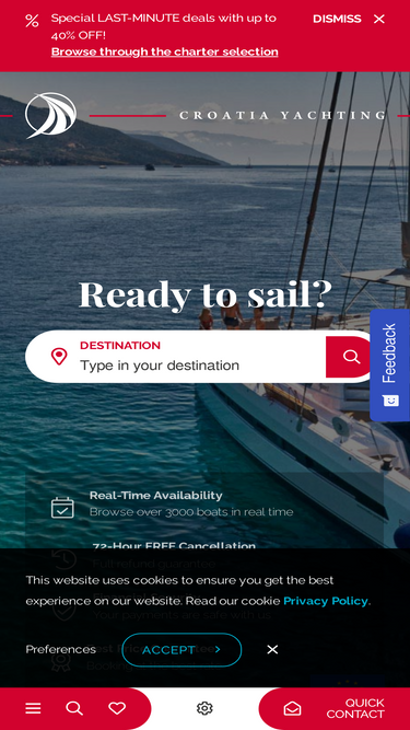 70%wide selection of sailing yachts, catamaran and motor boats for charter in croatia, adriatic. boats are available as bareboat charter or skippered charters. charter bases: zadar, sibenik, trogir, split. special offers, early booking and last minute discounts.