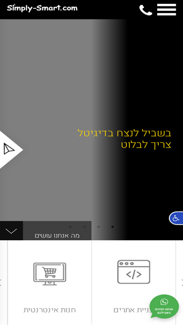 87%ברוכים הבאים לסימפלי סמארט שירותי בניית אתרים וקידום אתרים בגוגל. עשרים שנים אנחנו נושמים וחיים אינטרנט. במהלך השנים הללו צברנו ידע וניסיון רב בבניית חנות אינטרנטית, בעיצוב וקידום ברשת. בין שירותנו תוכלו למצוא: בניית אתר אינטרנט, שירותי קידום אורגני, קידום ממומן, בניית חנות וירטואלית ואתרי מכירות ועוד שירותים דיגיטלים שהעסק שלכם צריך.