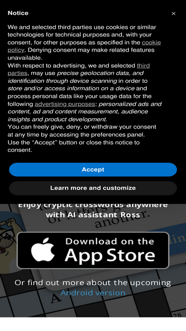 59%Crossword Genius is an app for cryptic crosswords. Featuring Ross, an AI who solves and explain cryptic clues. Scan printed crosswords into your phone.