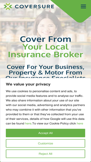 89%With over 90 independent offices throughout the UK, friendly insurance advice and competitive insurance quotes Coversure is your local insurance broker