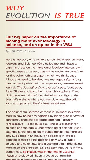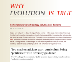 90%Why Evolution is True is a blog written by Jerry Coyne, centered on evolution and biology but also dealing with diverse topics like politics, culture, and cats.