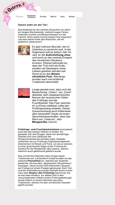 100%ostern im web beschreibt die sitten, gebräuche und traditionen rund um das osterfest. österliche geschichten, gedichte, rezepte, spiele, bilder, u.v.m. werden euch schnell in osterstimmung bringen.