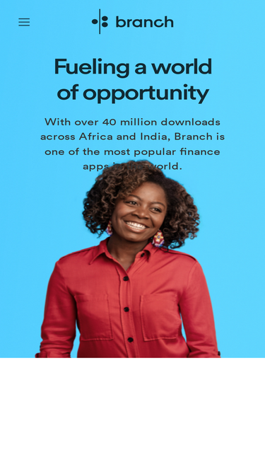 61%branch is the world's leading personal finance app that provides access to instant loans with no physical documentation. branch is transforming and changing the way loans work by providing the most advanced financial services solution in the market through a combination of world-class data science, advanced customer insights, and international fintech best practices.