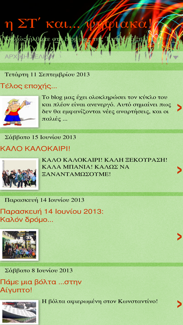 61%χαιρετισμός από τη διευθύντρια του σχολείου αγαπητοί αναγνώστες, ο ιστοχώρος αυτός αποσκοπεί στην ανάπτυξη της επικοινωνίας ανάμεσα στα παιδιά και στην προβ