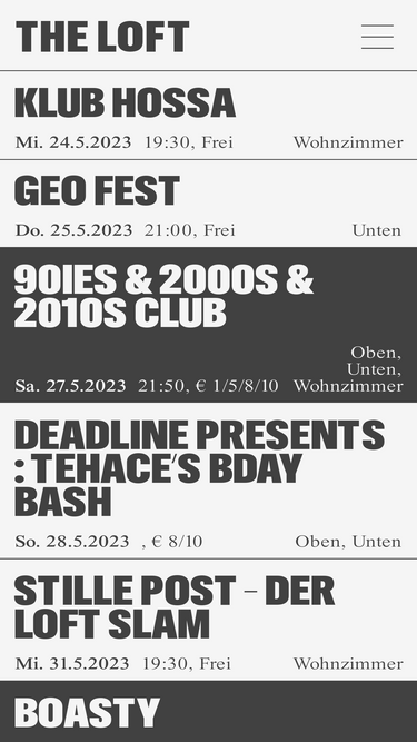 Über The Loft Nach 2 Jahren Planung, Genehmigungsverfahren und Umbauten wurde The Loft am 18. Dezember 2009 eröffnet. Eine Location mit Geschichte. Holzbodenfabrik, Tanzschule oder afghanischer Supermarkt – während des letzten Jahrhunderts konnten im Haus am Gürtel verschiedenste Dienstleistungen in Anspruch genommen werden. Seit der geschichtsträchtigen Einweihungsfeier dürfen die Räumlichkeiten…