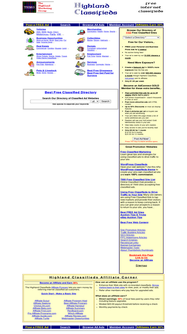 100%free personal and business classified ads for up to 26 weeks. includes a comprehensive directory of hundreds of other sites accepting free classified ads by category.