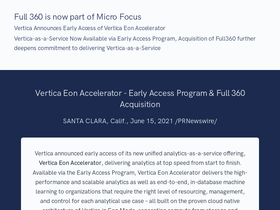 77%Vertica announced early access of its new unified analytics-as-a-service offering, Vertica Eon Accelerator, delivering analytics at top speed from start to finish. Available via the Early Access Program, Vertica Eon Accelerator delivers the high-performance and scalable analytics as well as end-to-end, in-database machine learning to organizations that require the right level of resourcing, management, and control for each analytical use case – all built on the proven cloud native architecture of Vertica in Eon Mode, separating compute from storage and leveraging S3 Object Storage on AWS.