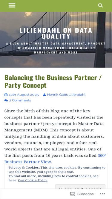 99%Since the birth of this blog one of the key concepts that has been repeatedly visited is the business partner / party concept in Master Data Management (MDM). This concept is about unifying the han…
