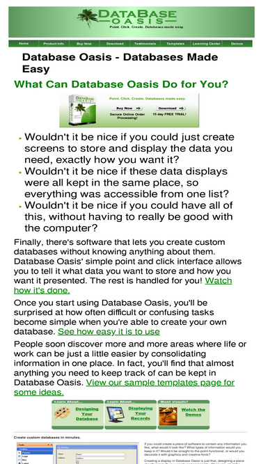 98%anyone can use database oasis to create completely custom databases for home or business. designed for computer novices.