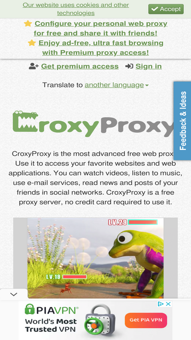 81%croxyproxy is the most advanced free web proxy. use it to access your favorite websites and web applications. you can watch videos, listen to music, read news and posts of your friends in social networks.