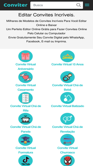 73%Milhares de Modelos de Convites Incríveis Para Você Editar Online e Baixar Um Perfeito Editor Online Grátis para Fazer Convites Online Pelo Celular ou Computador Envie Gratuitamente Seu Convite Digital pelo WhatsApp, Facebook, E-mail ou Imprima.
